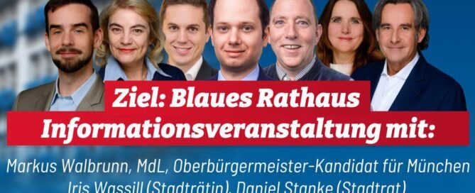 Es werden reden unsere derzeitigen Stadträte im Münchner Rathaus Markus Walbrunn, Iris Wassill und Daniel Stanke, sowie die Stadtratskandidaten Christian Christoph, Manuela Albracht und Dr. Peter Reich.