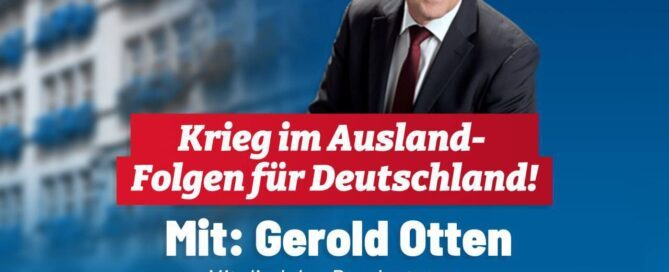🏫 Gerold Otten, MdB und Oberst d.R. a.D. wird spannende Einblicke in die Außen- und Verteidigungspolitik der AfD- Bundestagsfraktion geben sowie aktuelle Problemlagen wie den Ukraine-Krieg und seine Außenwirkungen auf Deutschland aufzeigen. Im Anschluss folgt eine offene Diskussionsrunde.